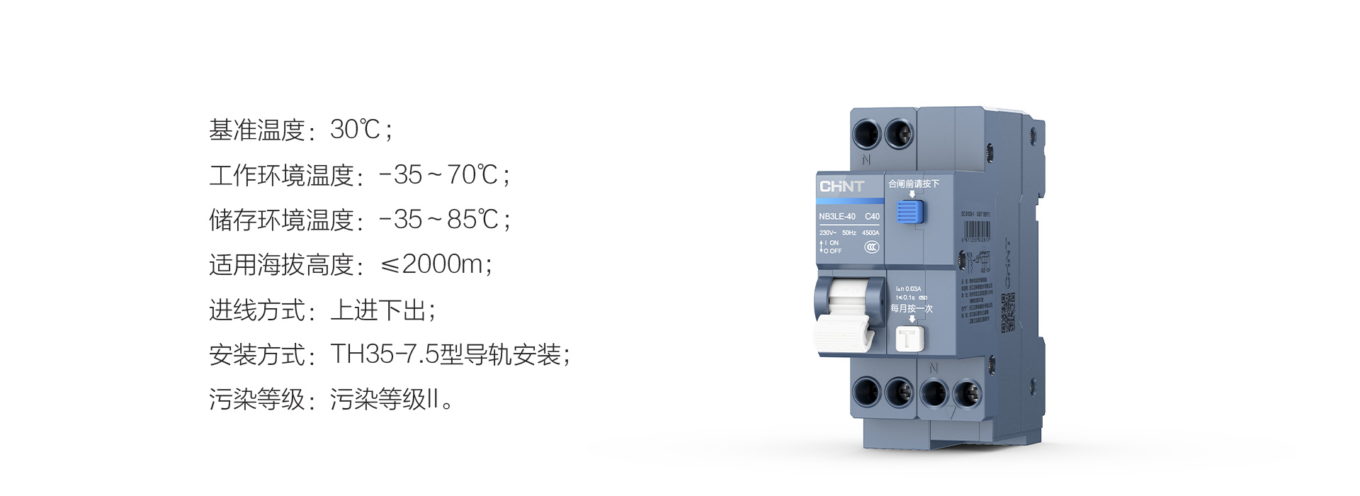 正泰泰極NB3LE-40漏電保護器適用于交流50Hz,額定電壓至230V,額定電流至40A的線路,起過載、短路和漏電保護作用,亦可在正常情況下作為線路不頻繁通斷之用。